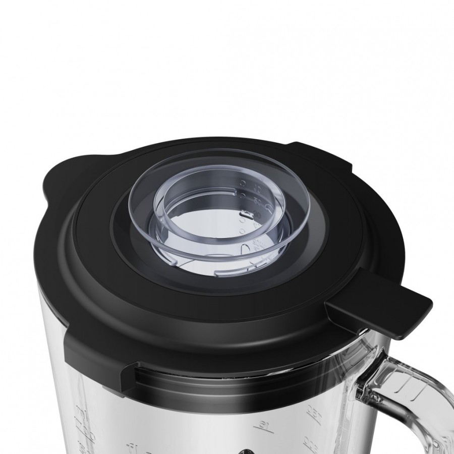 Blenderul de masă cu un motor puternic de 1400 W poate prepara cu ușurință smoothie-uri, milkshake-uri și gheață zdrobită.
