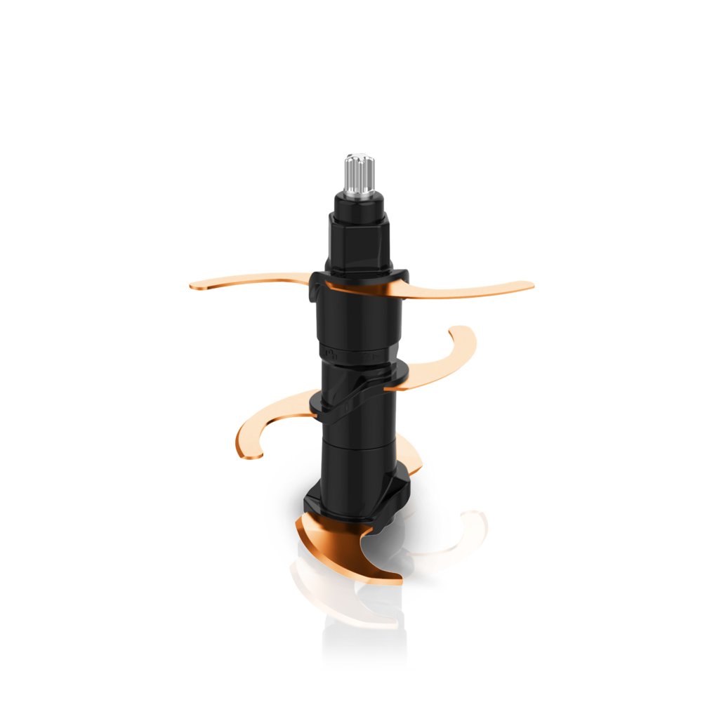 Cu un motor puternic de 1000 W și șase lame tratate cu titan, taie cu ușurință carne, legume, ierburi sau chiar gheață. Vasul din sticlă extra mare cu o capacitate de 2 litri permite procesarea unei cantități mai mari de ingrediente de dată, ceea ce va fi apreciat în pregătirea meselor pentru familie, dar și în cine festive.