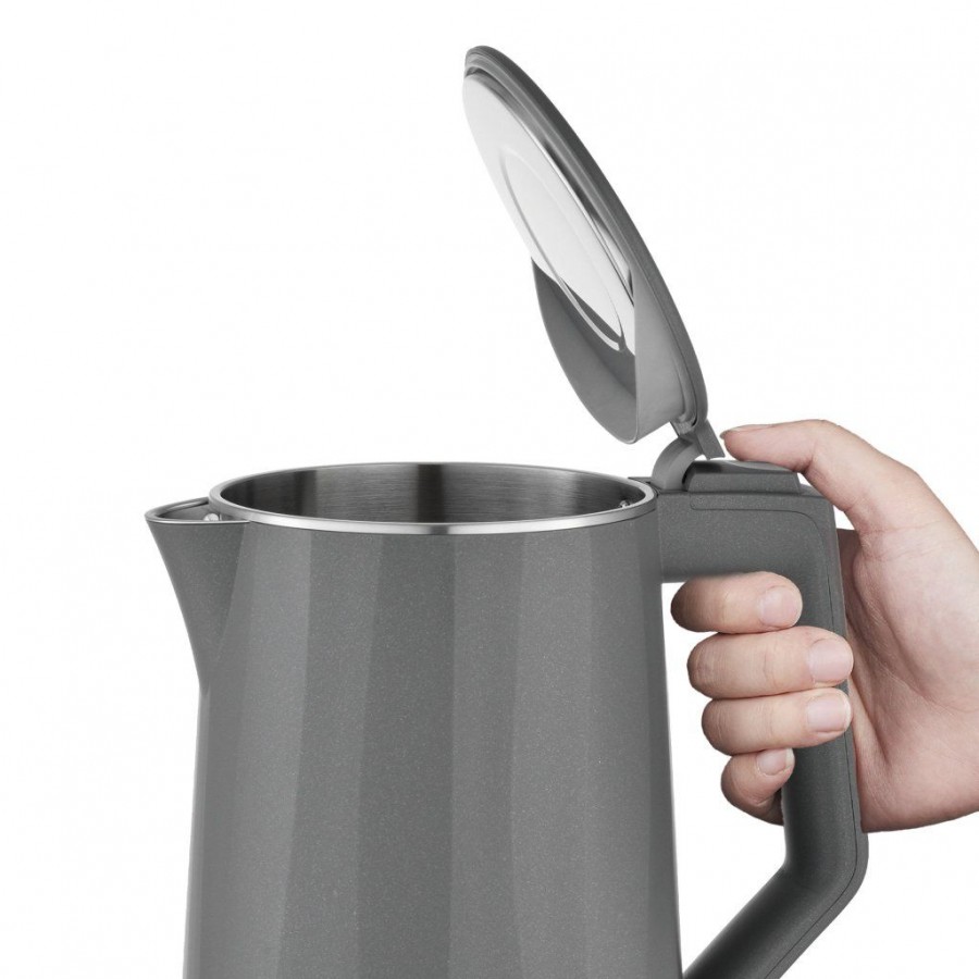 Capacitatea de 1,7 litri și indicatorul nivelului apei situat în interiorul fierbătorului permit prepararea ușoară a băuturilor calde pentru întreaga familie. Deschiderea automată a capacului asigură o utilizare confortabilă cu o singură mână.