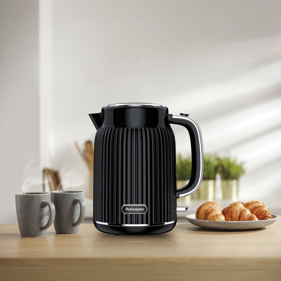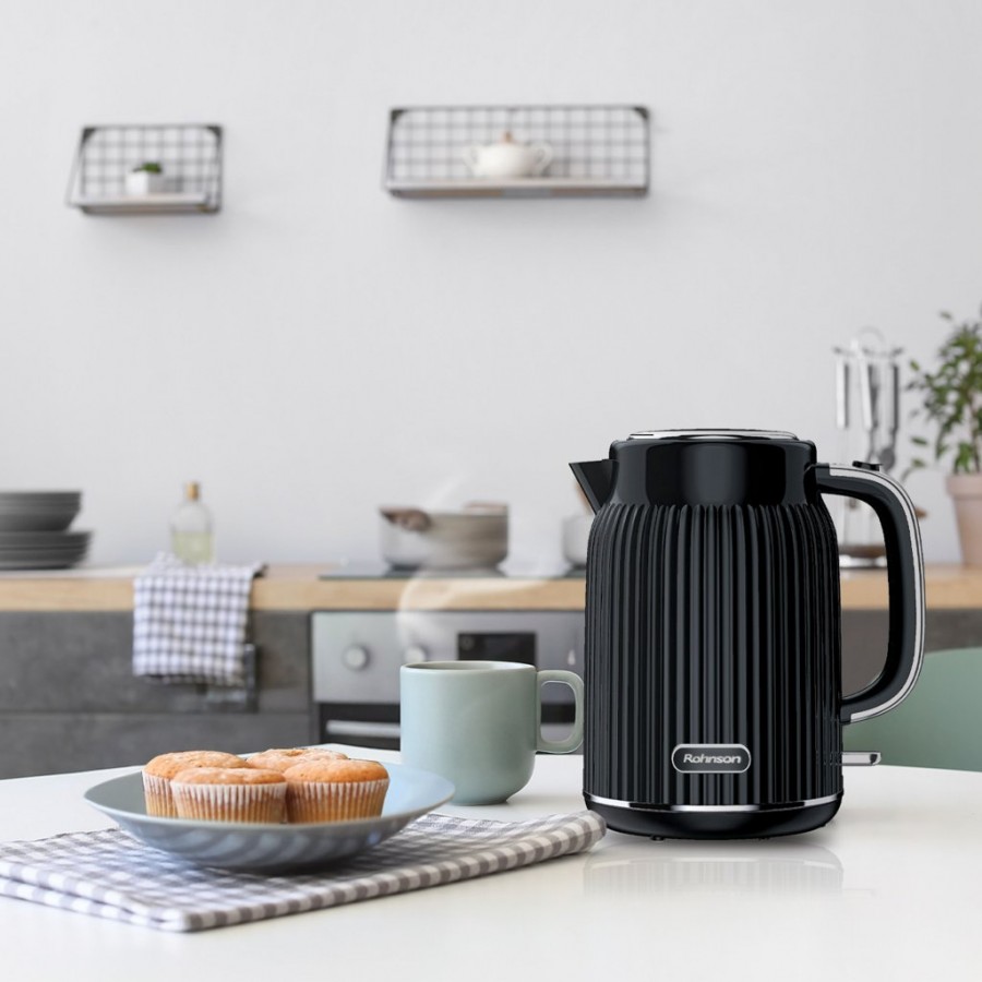 Fierbator electric Rohnson R7711, 1850-2200W, 1.7 l, baza rotativa, filtru anticalcar, protectie anti-fierbere uscata, protectie supraincalzire, oprire automata, conector Strix, culoare neagra