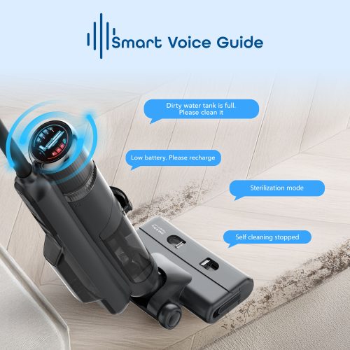 Prin apăsarea unui buton, aspiratorul își activează funcția avansată de autocurățare, clătind temeinic peria de curățare și tuburile interne. Resturile și murdăria sunt îndepărtate automat, fără a fi nevoie să atingeți nimic cu mâna. După curățarea casei, dispozitivul se ocupă de curățare, menținând peria curată și gata pentru următoarea utilizare.