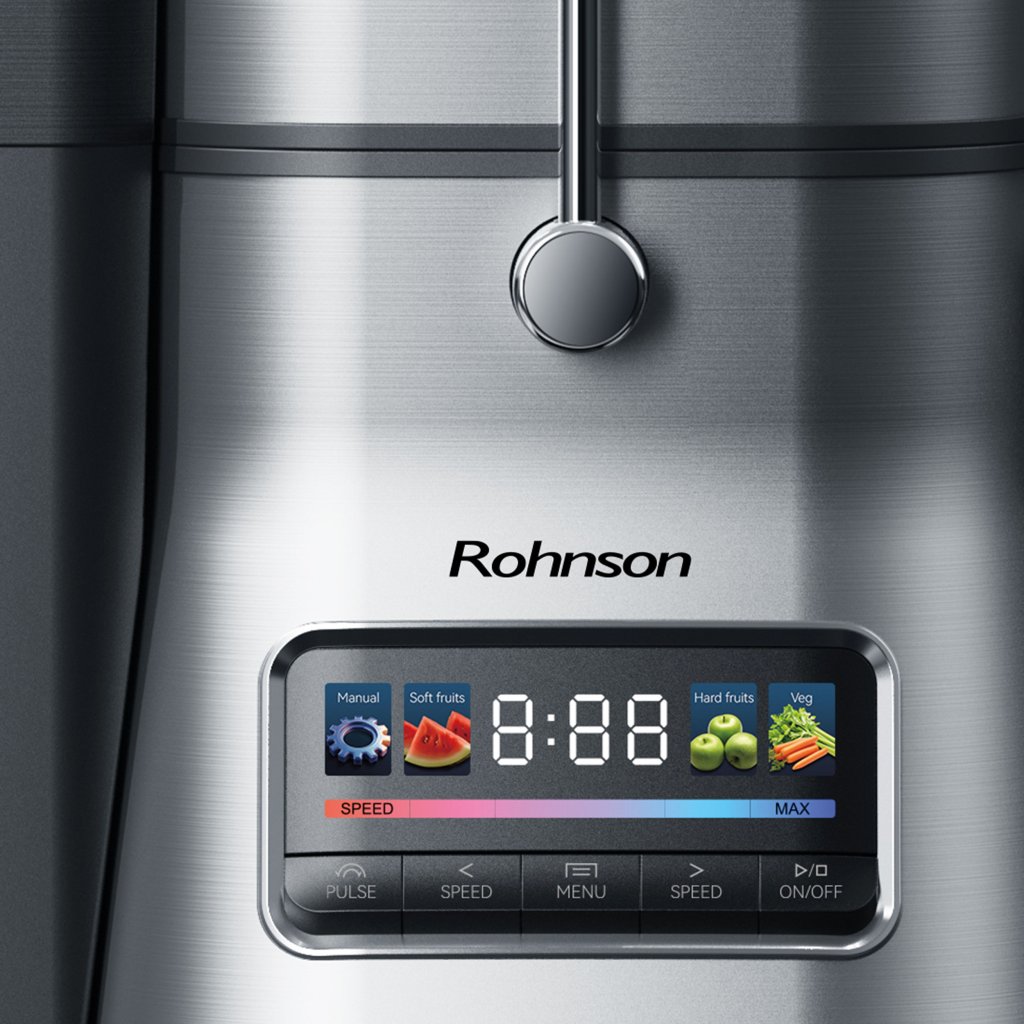 Storcator de fructe si legume , Rohnson R 4010 ,1500W, afisaj digital, Ø 84 mm, 7000-12000 rpm, recipient suc 1 L, 4 functii, 85 dB